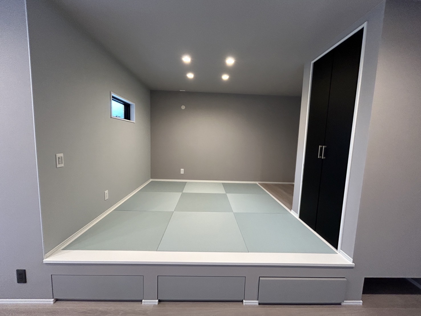 ここにも段差を活かした収納を設置しました👍