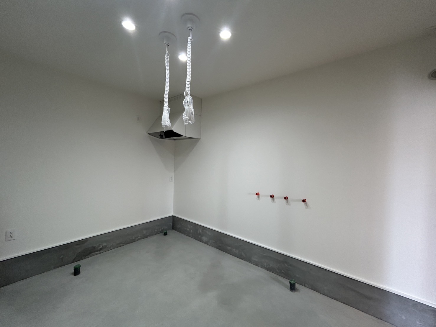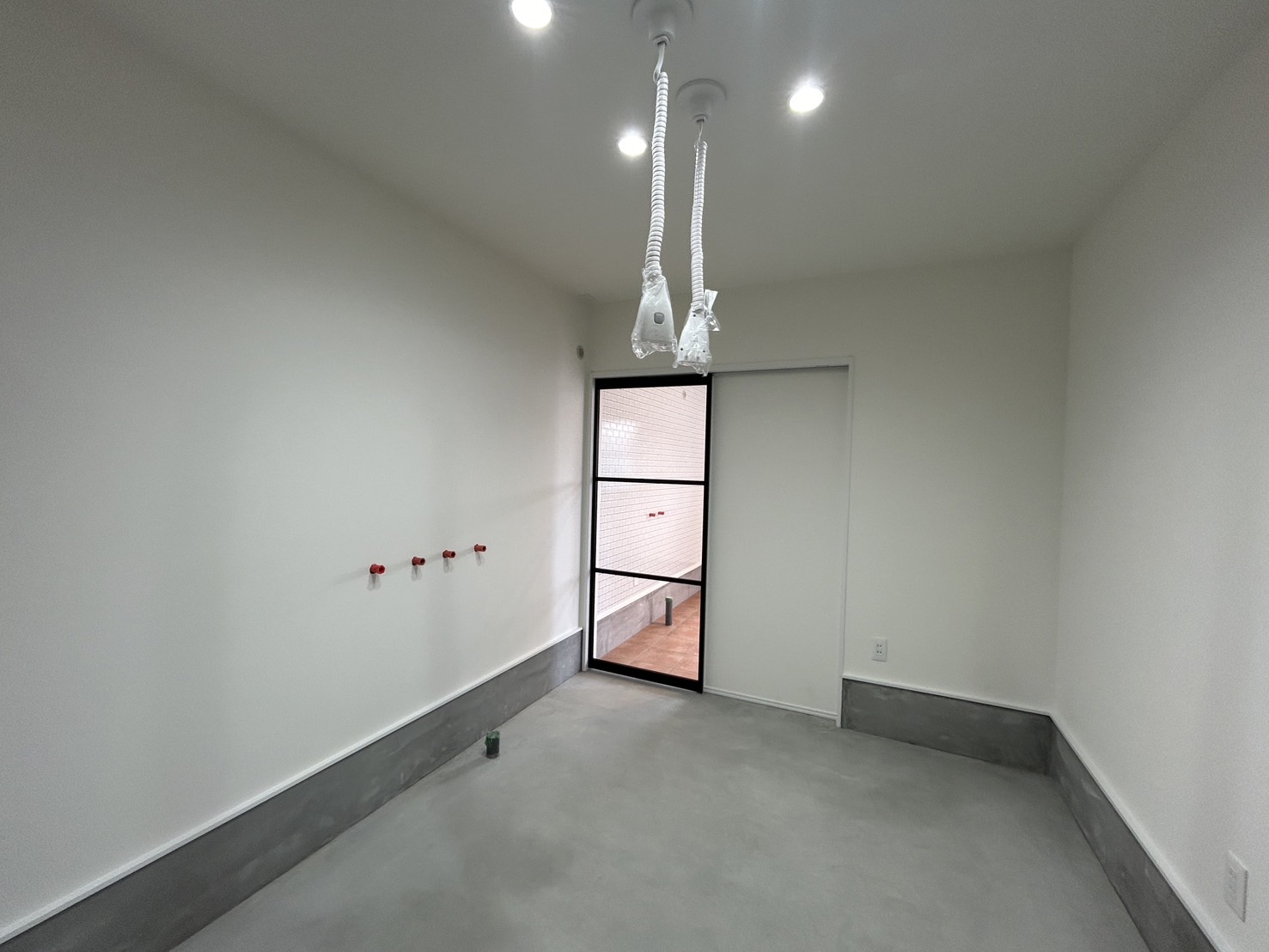 こちらの空間は、床タイルを敷いてあります😊壁のクロスは清潔感ある白を基調としていますが、アクセントとしてレンガ調のものを一部張りました👍