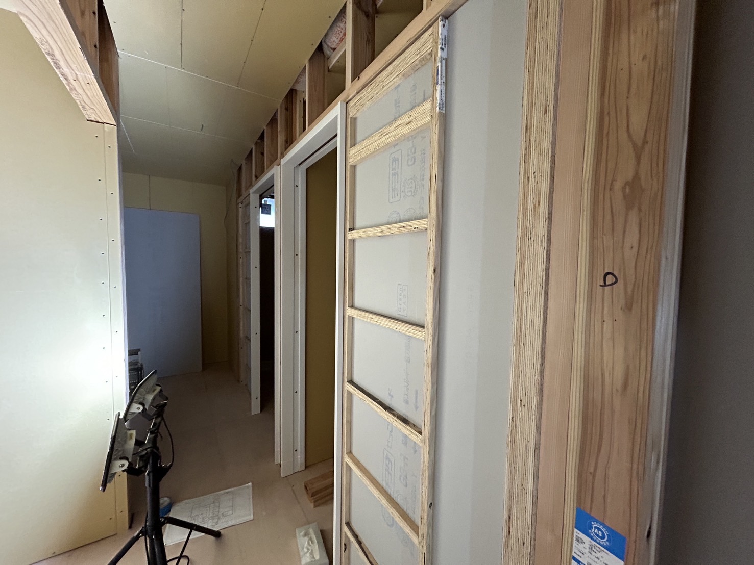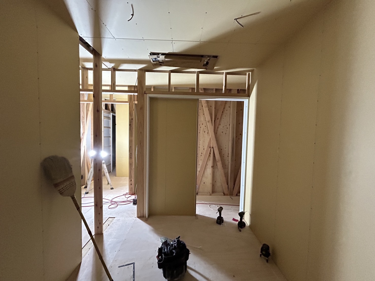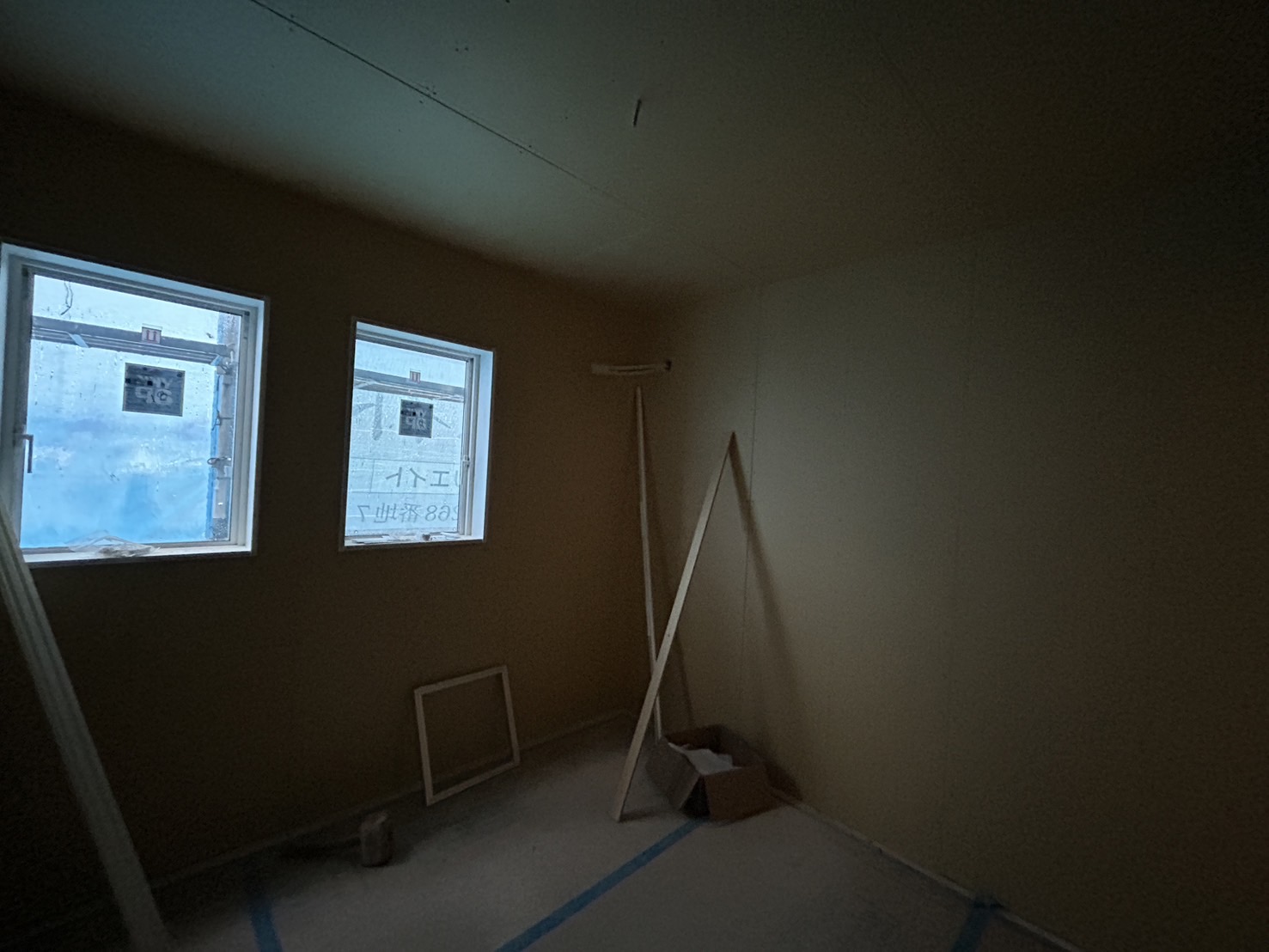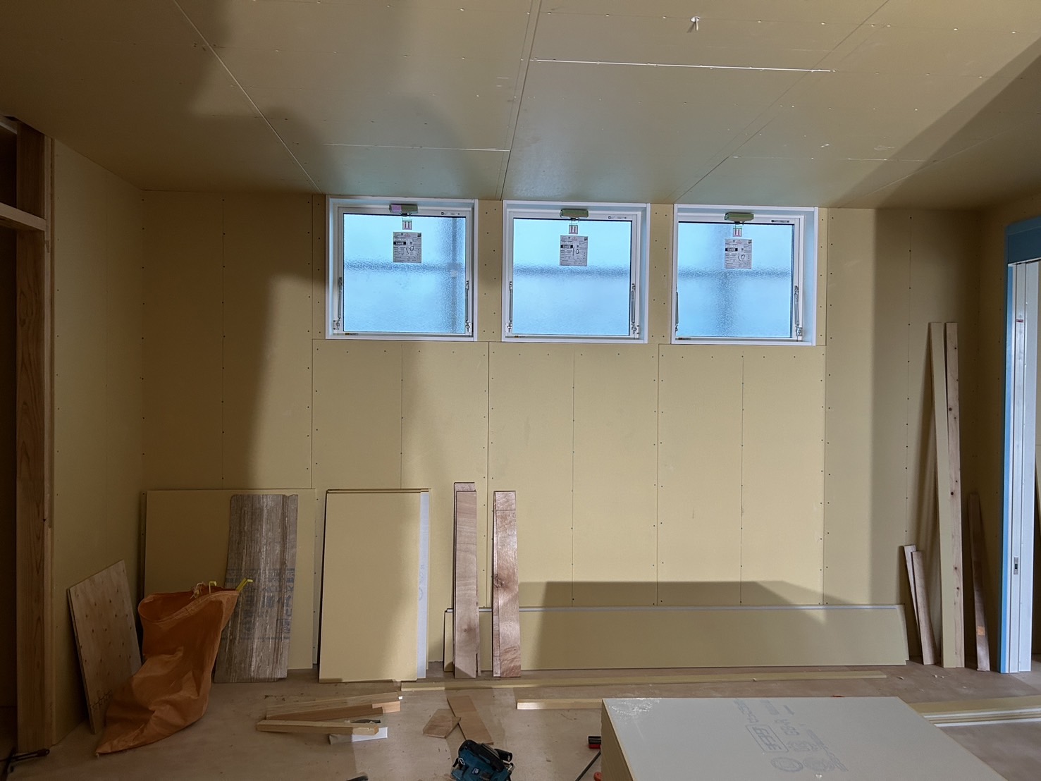 プラスターボード張りの作業はほぼ完了間近です😊
