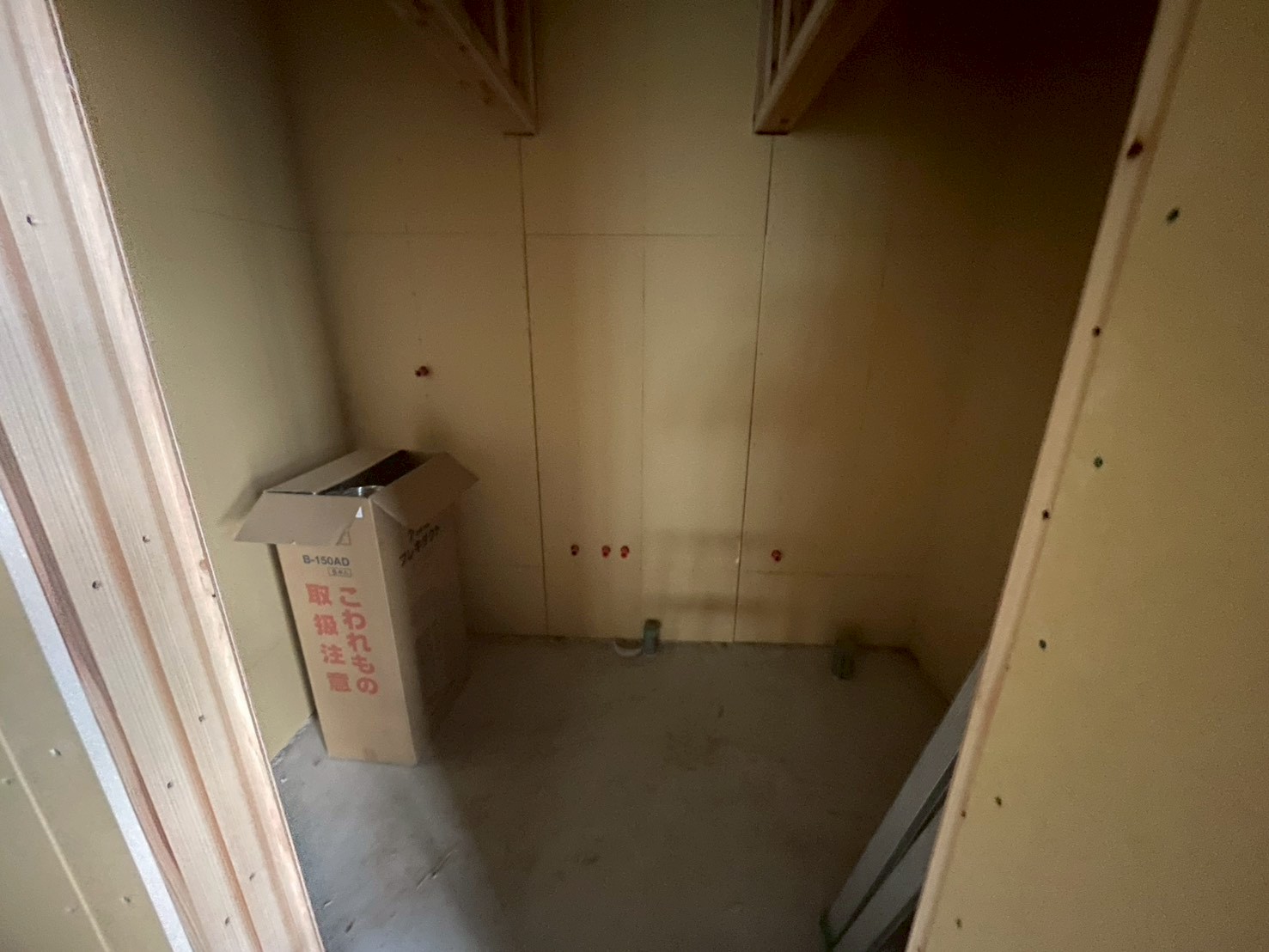内部造作工事が進み、断熱材設置後、天井、壁のプラスターボード張りがほぼ完了しました😊