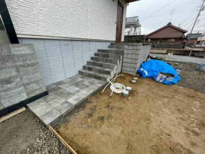 玄関ポーチにタイル使った階段とアプローチが完成✨✨
