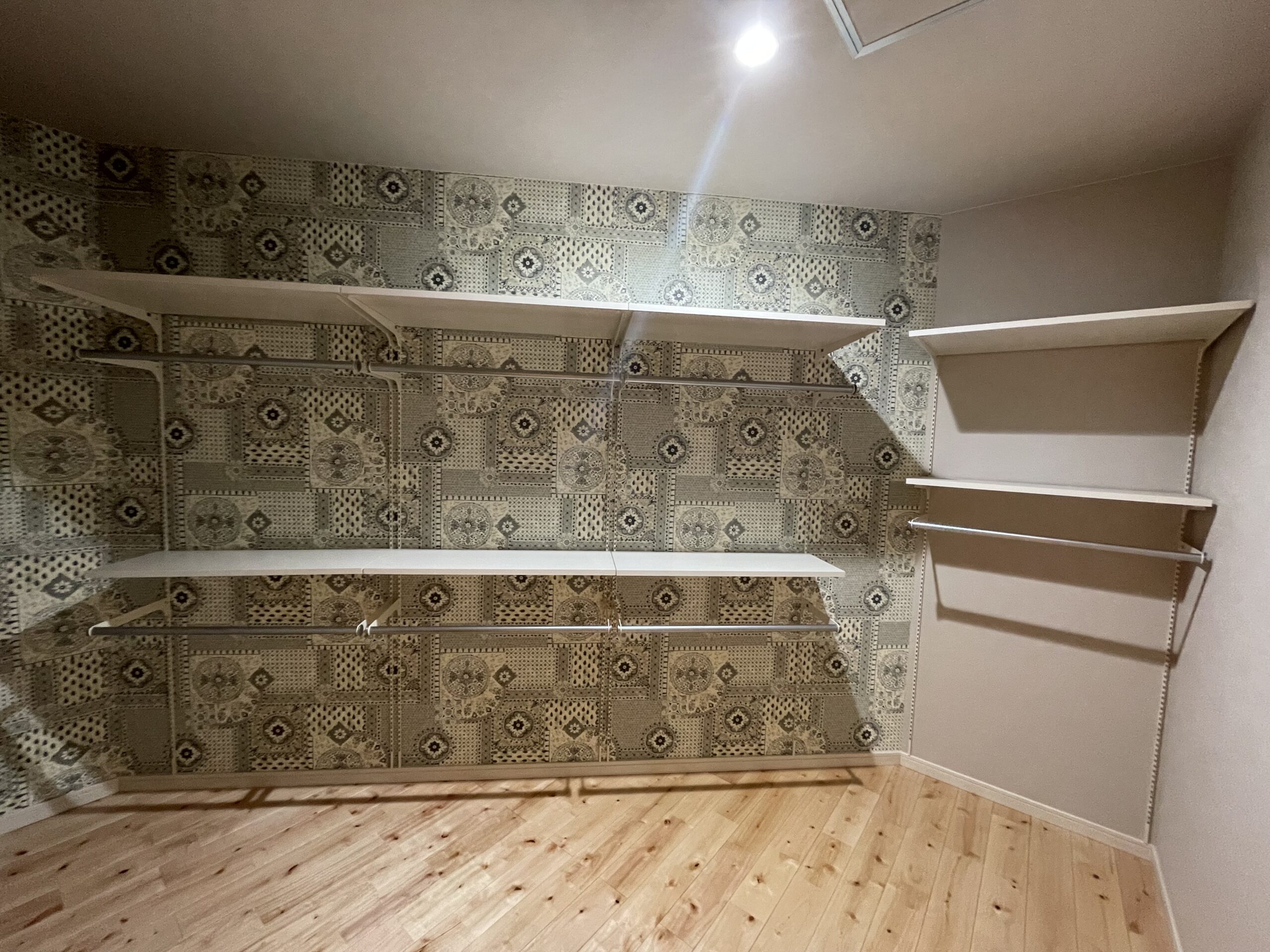 アクセントにデザインのクロスを張りました👍👍
