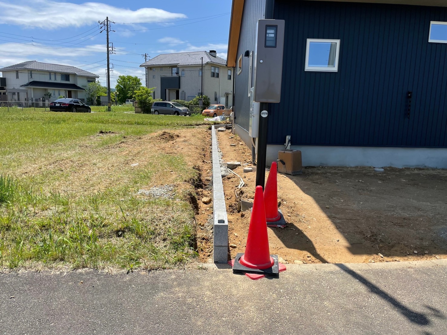 カーブの土地を生かして、どのような外構が出来上がるのか楽しみですね🎵