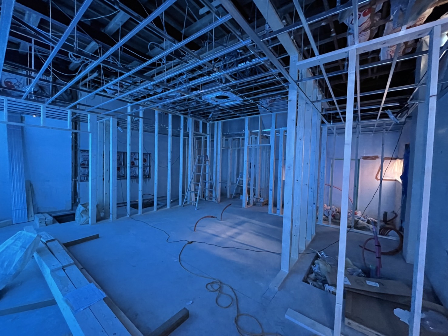 店舗内の間仕切り壁用の下地を組みました🔨
