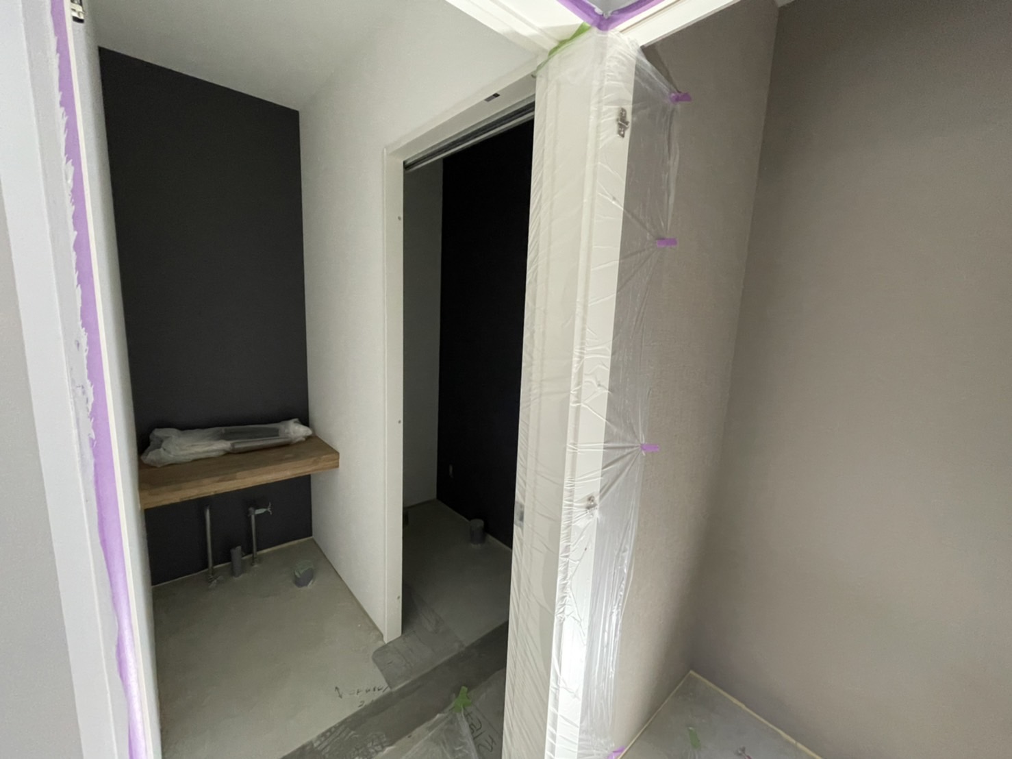 広めの空間は塗装で、個室関係はクロスで仕上げていきます♬♩♪