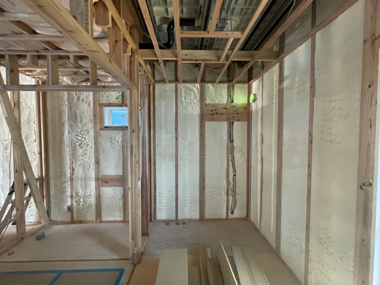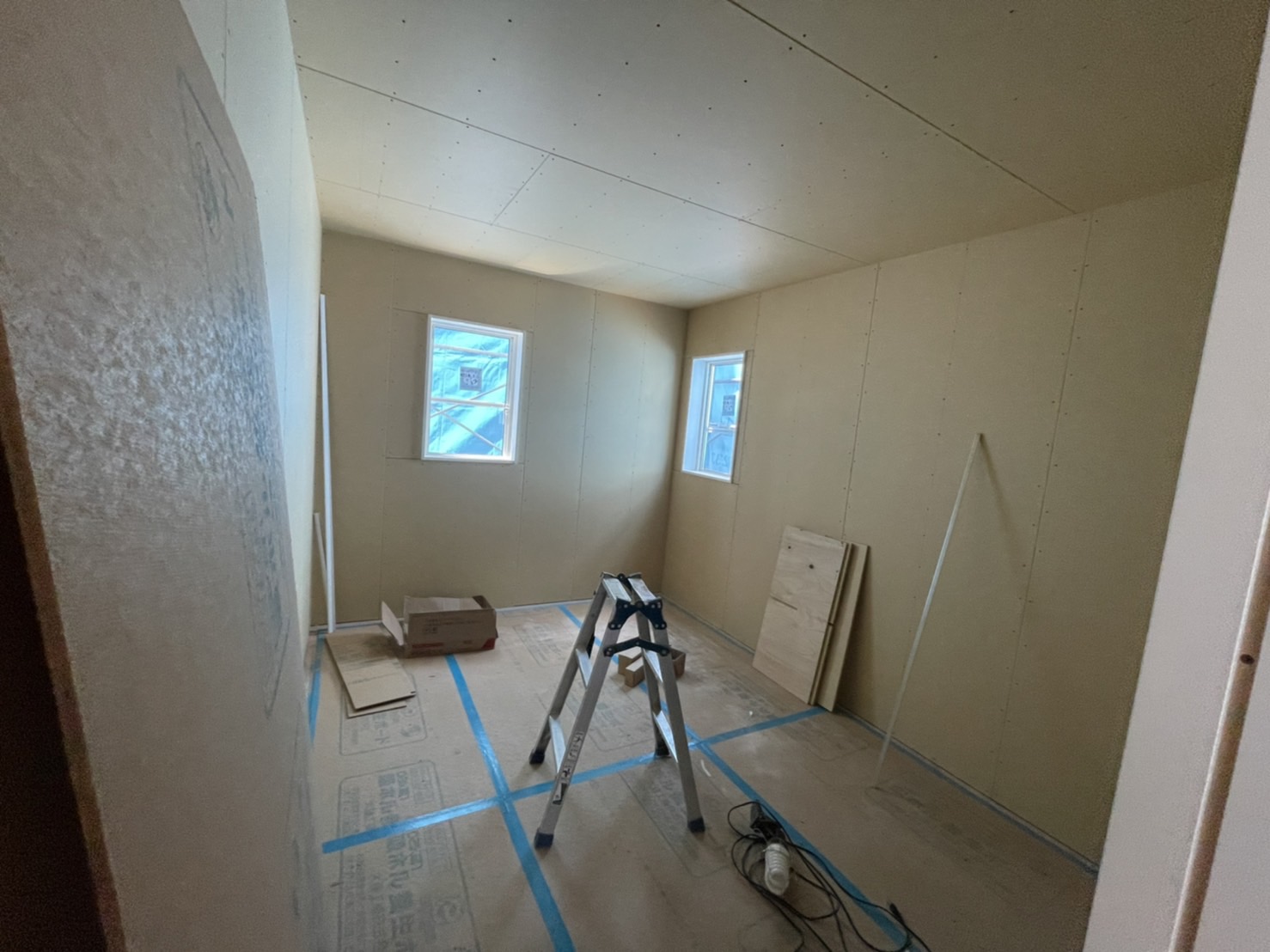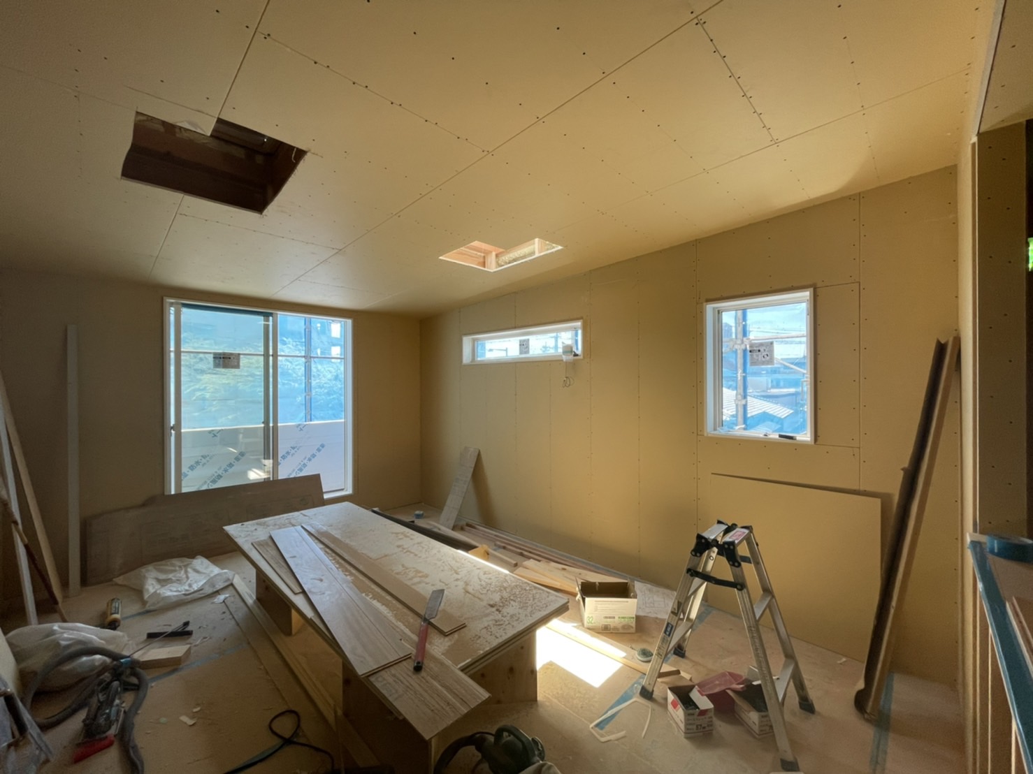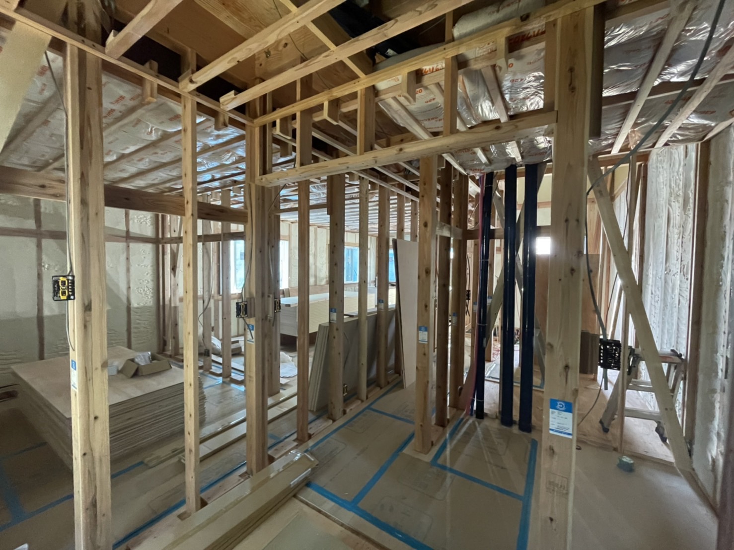 ⇩こちらは、2階部分の造作です。プラスターボード張りの工程が進んでいます😊⇩