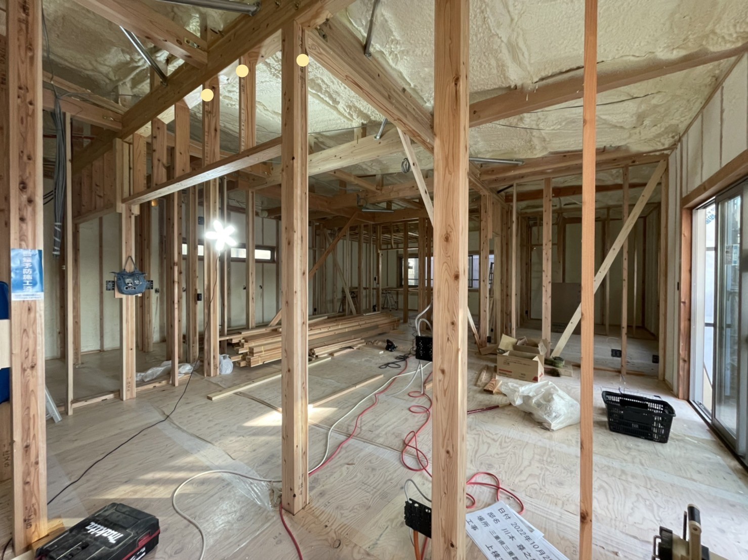 【サッシ・吹付断熱完了】家族の生活動線が工夫されたソーラーパネルがある平屋|菰野町K様邸新築工事