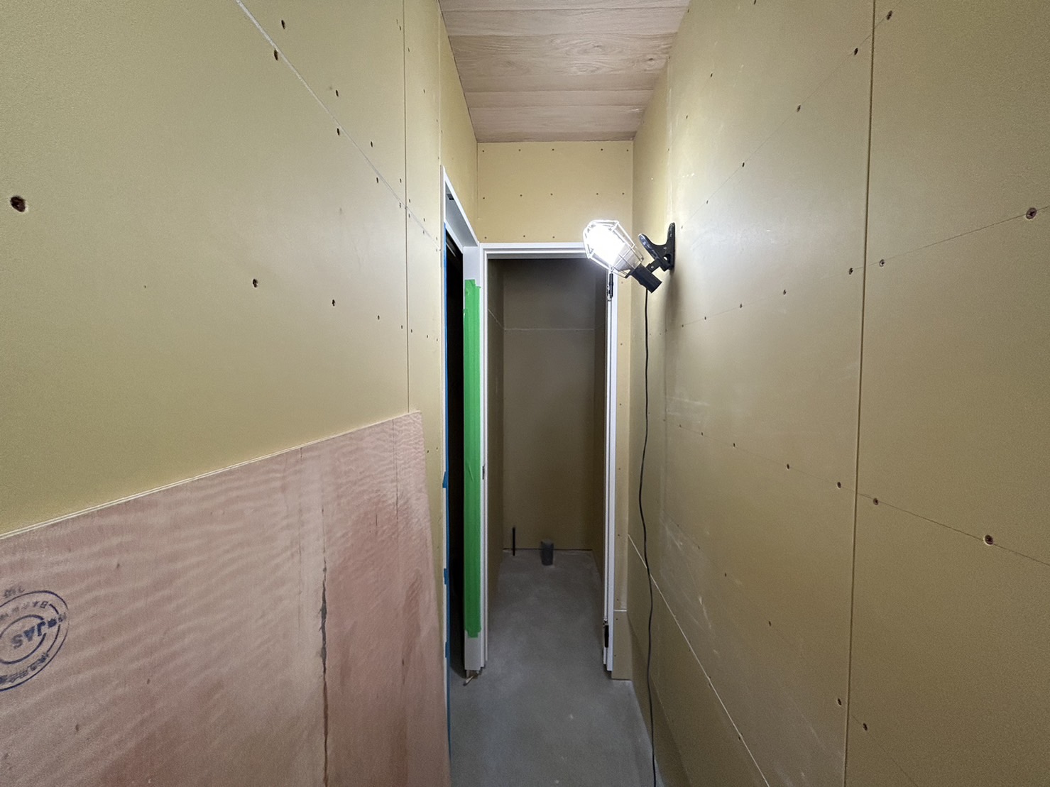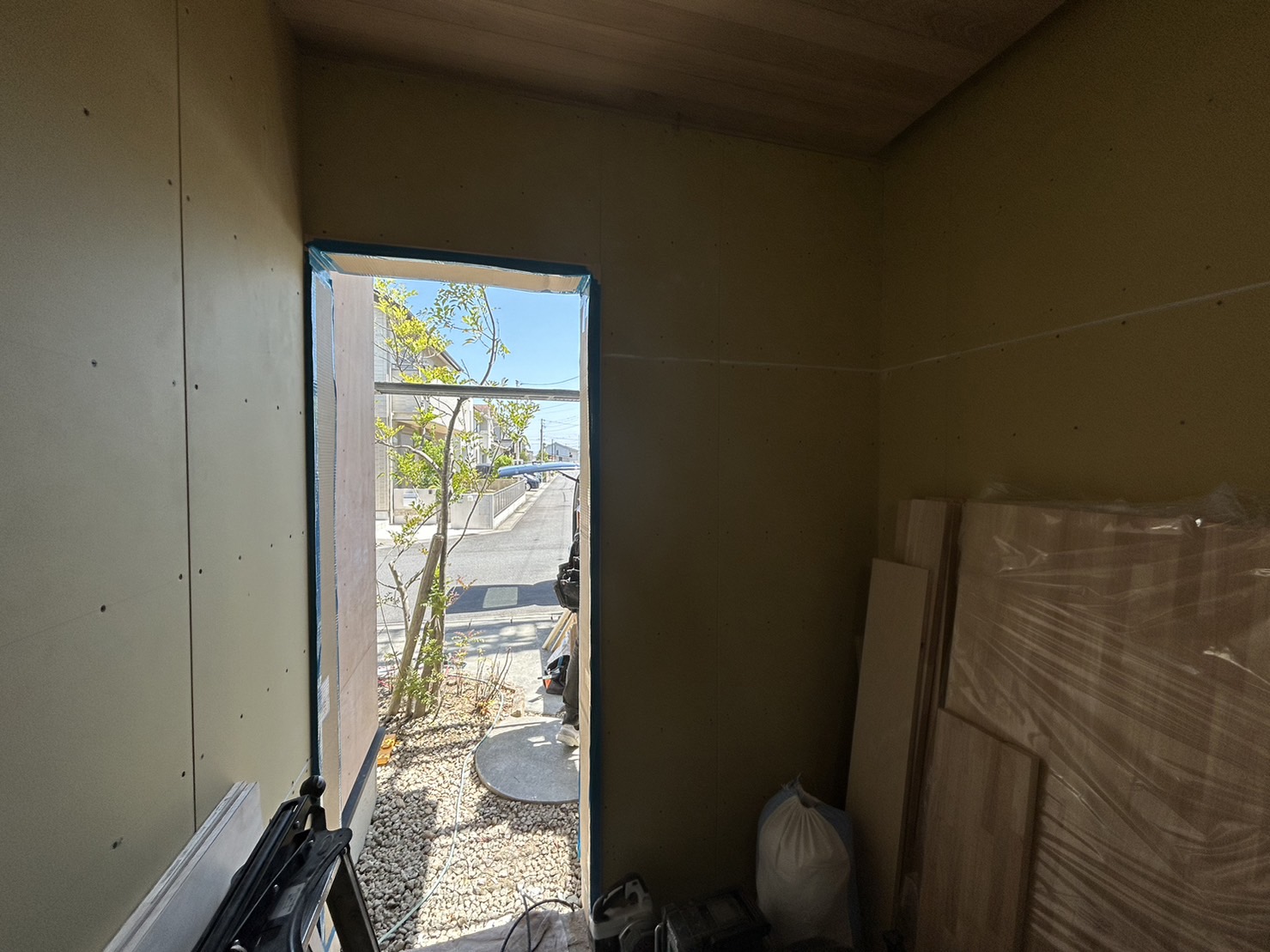 前回のブログで途中段階だったプラスターボード張りが完了👌