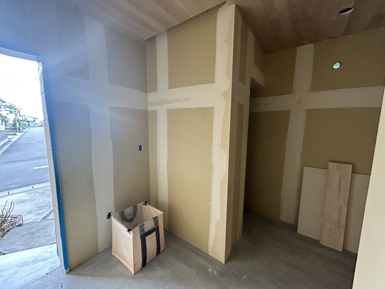 プラスターボードの継ぎ目やビスの段差を処理し、クロスを綺麗に張るための重要な作業が行われました✨
