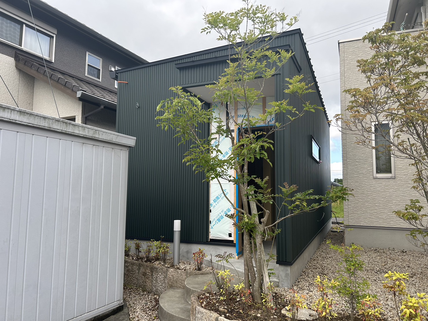 外壁の「ガルバリウム鋼板」を張る作業も進み、建物を囲っていた足場が外れました😊