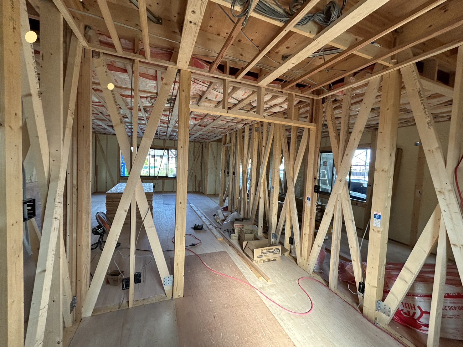 二階部分の床張りは完了しています😊