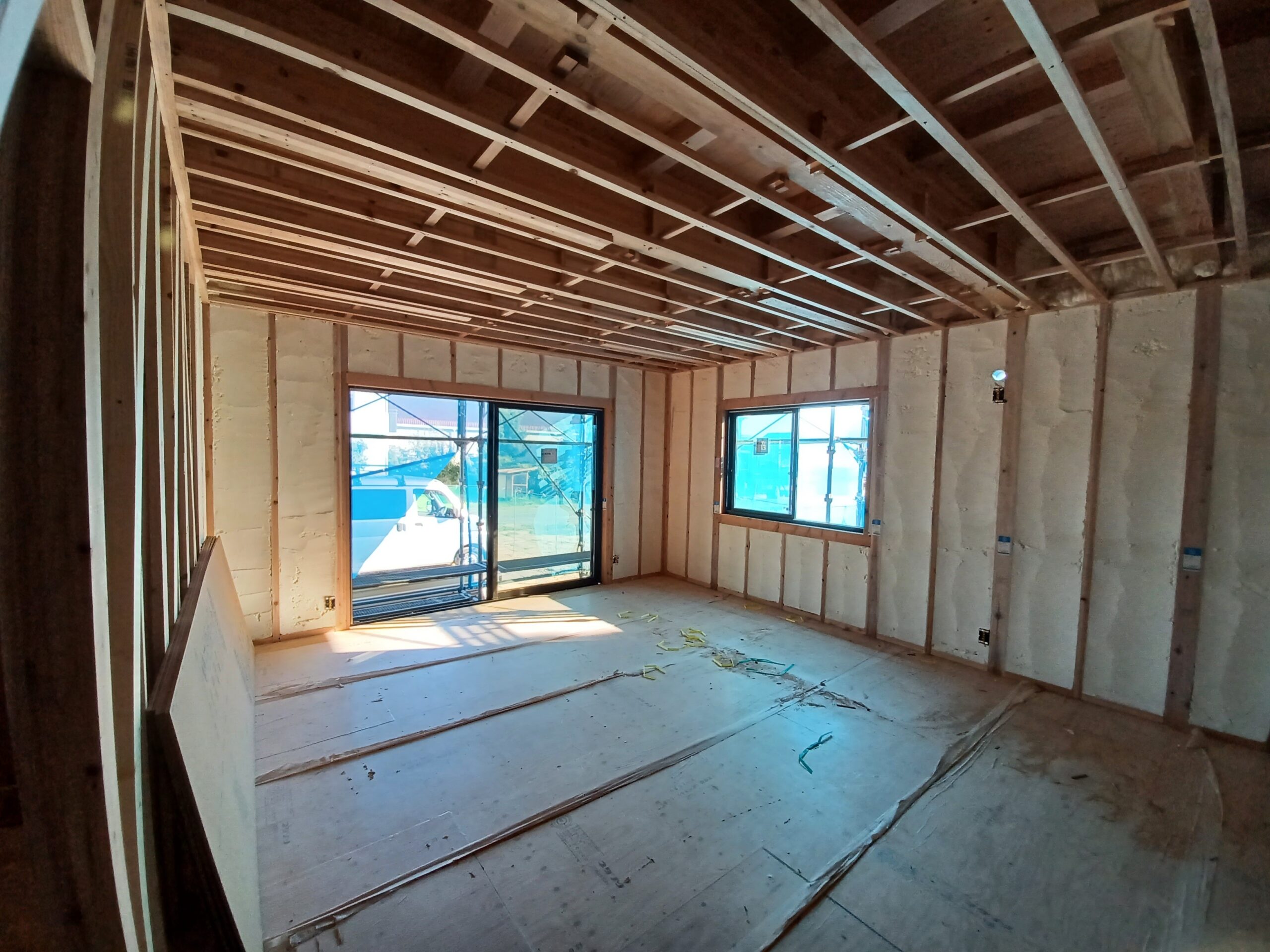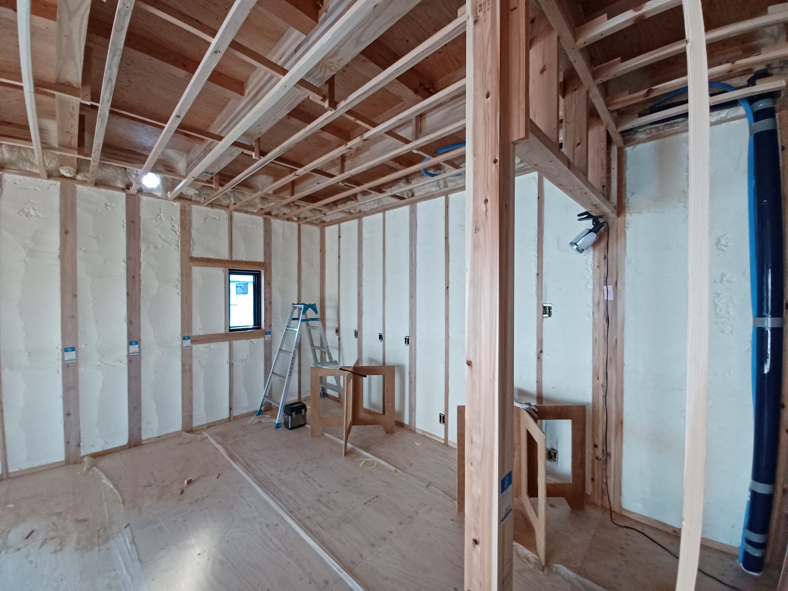 【サッシ取り付け・吹付断熱完了】自然豊かな敷地に建てるシンプルモダンの家|津市S様邸新築工事