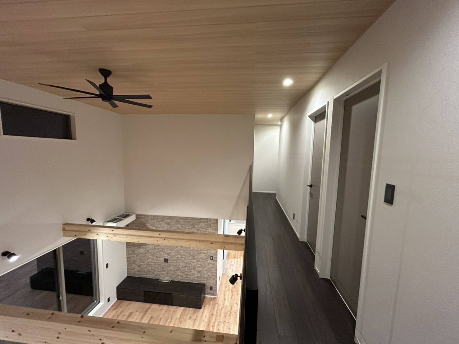 吹き抜けがあるリビングの照明は、スポットライト、ダウンライトを取り付けました💡