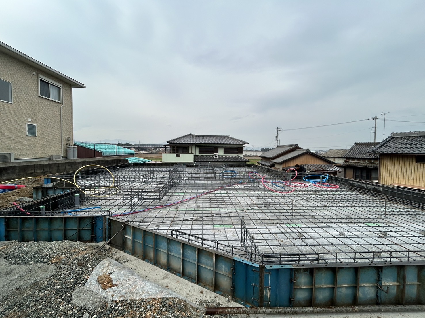 ③ 配筋検査に合格後、ベース部分にコンクリートを流しました。