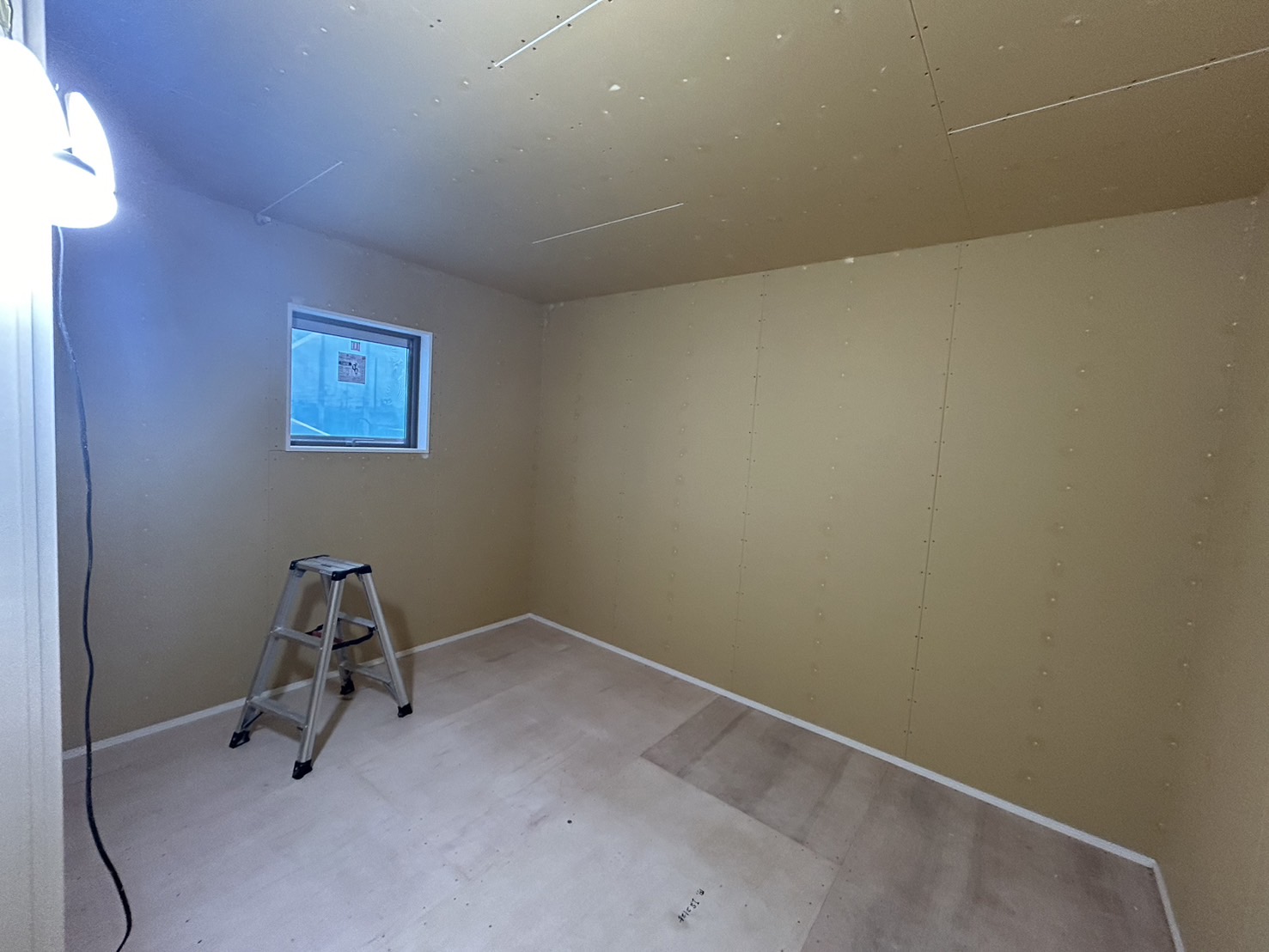 松阪市殿町M様邸は、プラスターボード張りが完了し、残された細かな造作工事が行われています。