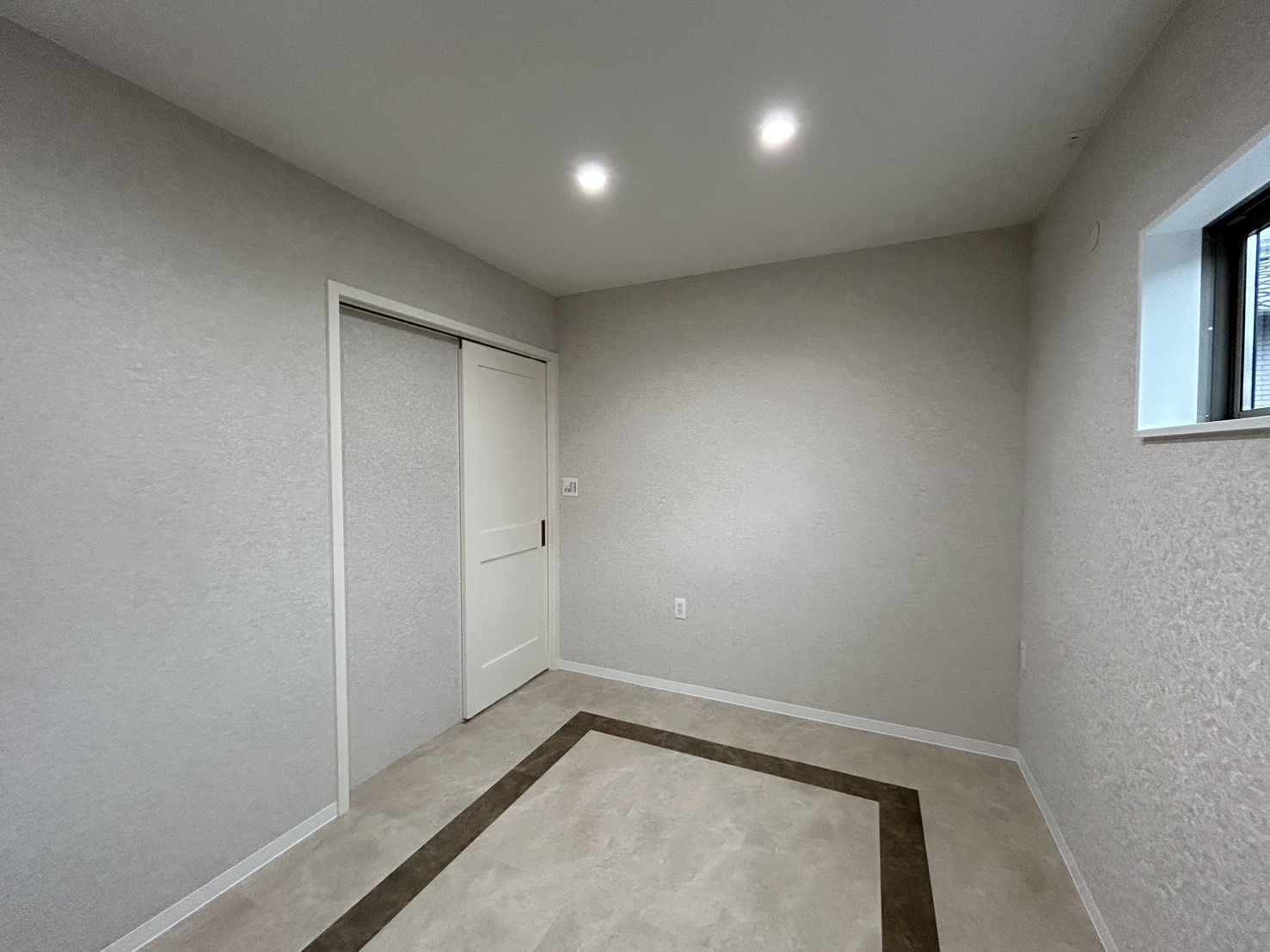 ピカピカ輝くフロアタイルは、お部屋のアクセントとして四角のデザインになるようにお色違いのタイルを並べました✨✨